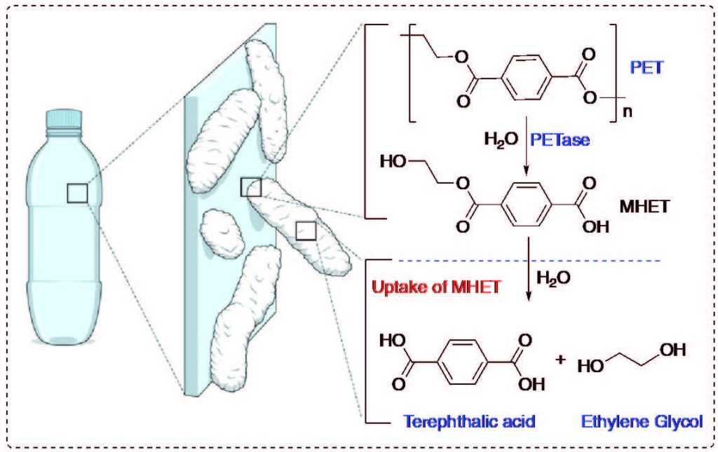 The researchers explained that their screening of natural microbial communities exposed to PET in the environment led to the isolation of Ideonella sakaiensis 201-F6, which utilizes PET as its primary energy and carbon source. They emphasized that both enzymes are crucial for efficiently converting PET into its benign monomers, terephthalic acid, and ethylene glycol.